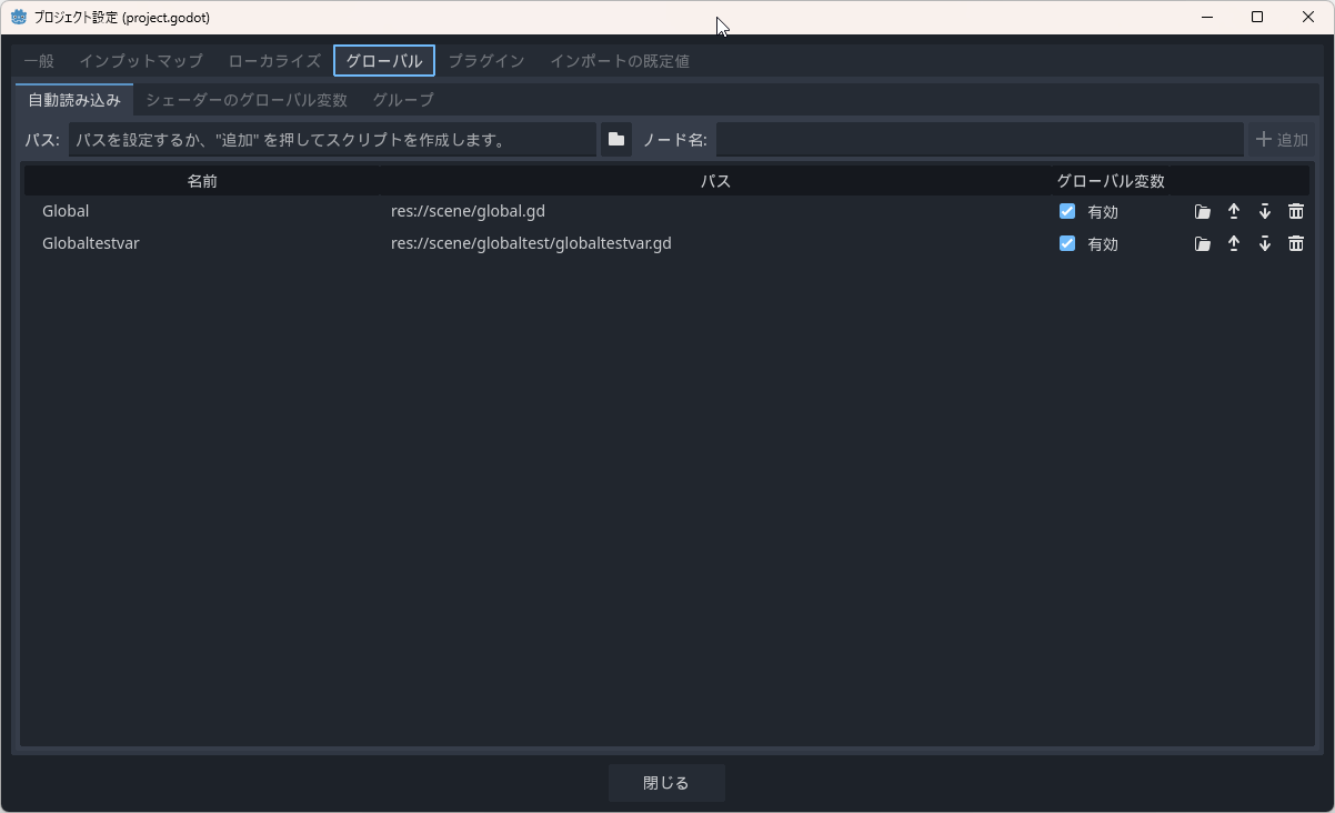 全てのシーンで共通で使用する変数や関数は、プロジェクト>グローバルで定義する