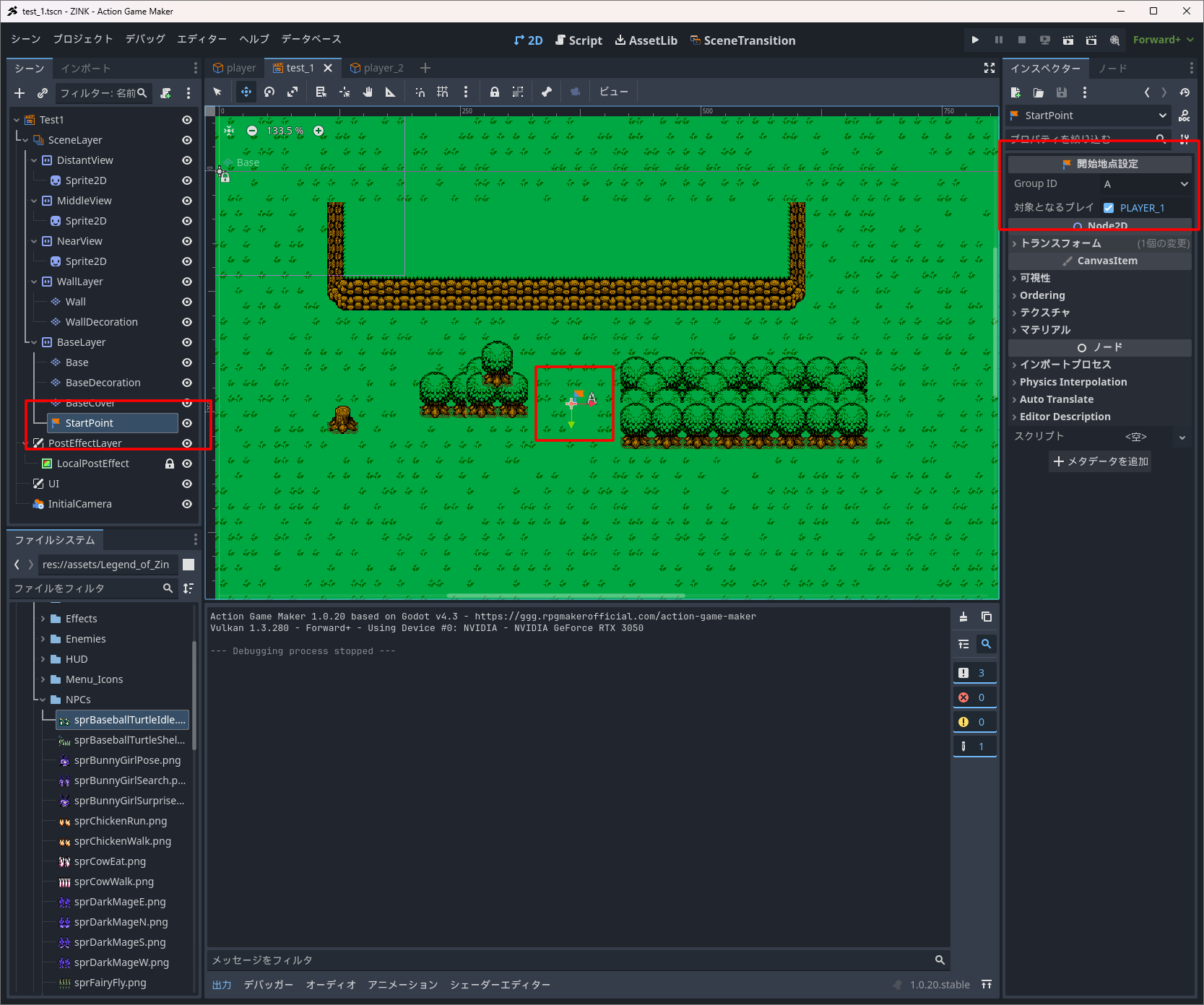 ■ゲームシーン内にStartPointを追加する