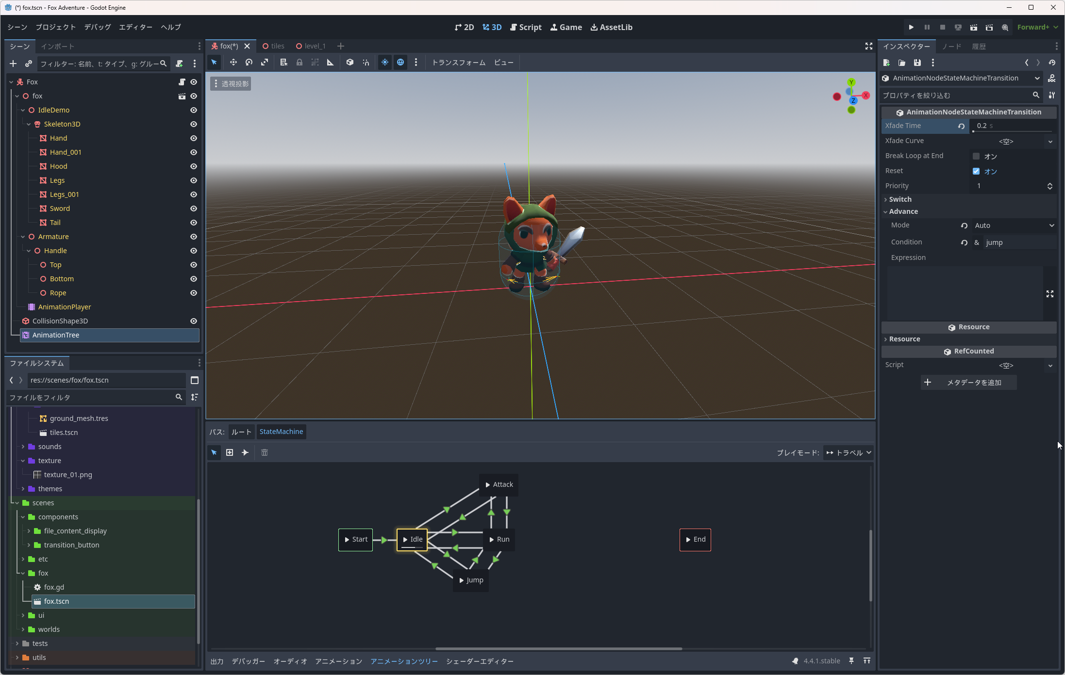 AnimationTreeのStateMachineはいらないかもだけど、後で必要になるかもしれないので入れておく。